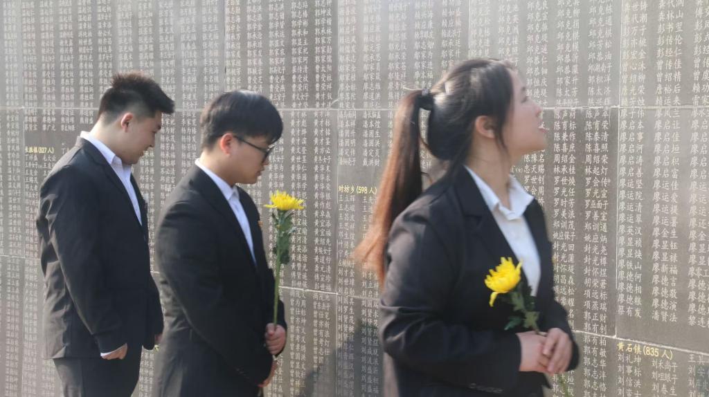 最后,全体同学怀着无比沉重与尊敬的心情,在英名墙前举行了祭奠仪式。仪式上,同学们首先宣读了祭词,表达对先烈们的深切缅怀和无限哀思;随后,全体人员向烈士墓深深鞠躬,并依次献上手中的鲜花,以寄托对先烈们的崇高敬意。在党旗下,学生党员们重温了入党誓词,铿锵有力的誓言在墓地上空回荡,彰显了他们继承先烈遗志、为共产主义事业奋斗终身的坚定决心。